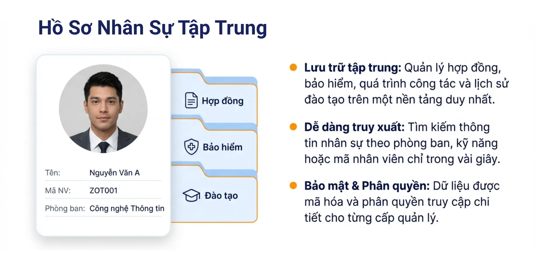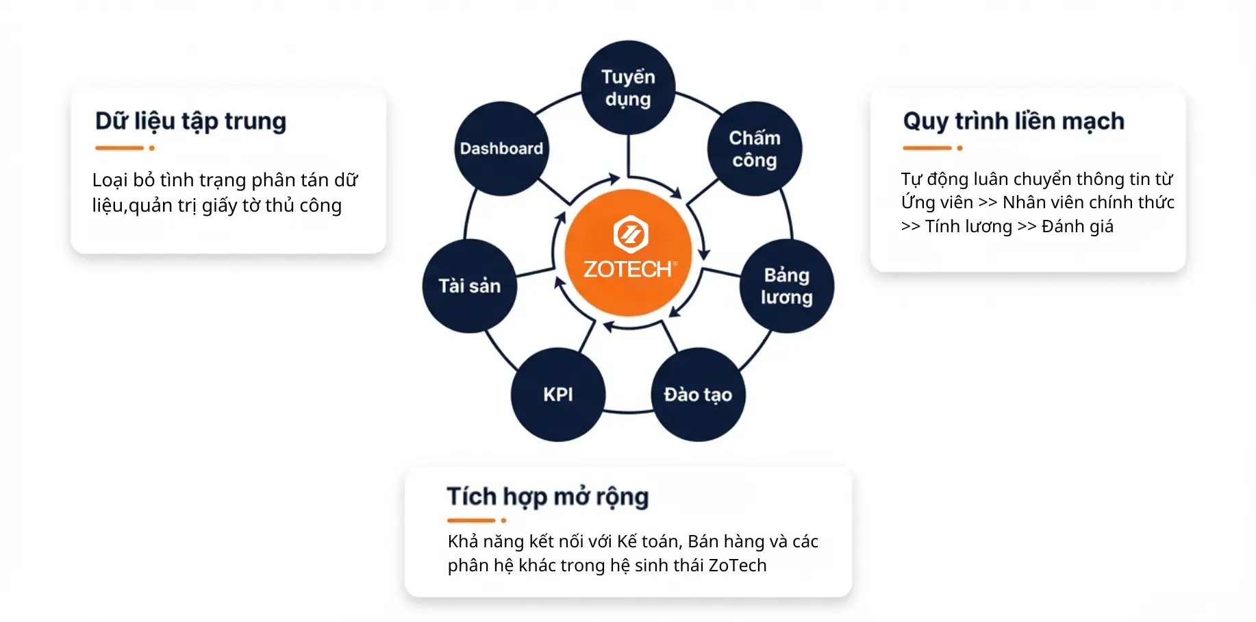 ZoTech HRM là giải pháp quản trị nhân sự toàn diện, hỗ trợ doanh nghiệp số hóa các nghiệp vụ như tuyển dụng, chấm công, tính lương và đánh giá hiệu suất. ZoTech giúp tối ưu quy trình vận hành, giảm tải công việc thủ công và nâng cao hiệu quả quản lý nhân sự cho Doanh nghiệp
